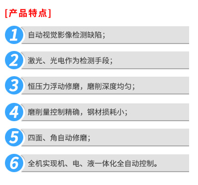 主要對連鑄方坯表面產(chǎn)生的裂紋等缺陷和氧化層進(jìn)行修磨,從而提高鋼坯的表面質(zhì)量。