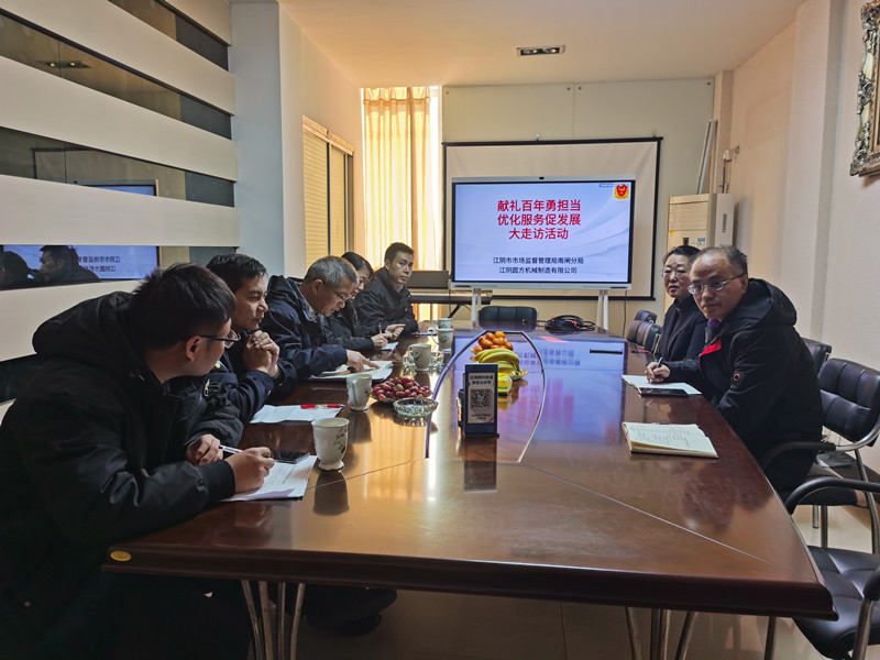 江陰市市場監(jiān)督局南閘分局孫局長、王局長等領(lǐng)導親自來我司走訪,就質(zhì)量工作、知識產(chǎn)權(quán)、特種設備等工作進行指導,袁芳董事長和孫局進行了深入交流。